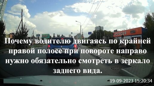 Видео наглядный пример, почему водителю при любом повороте надо смотреть в зеркало заднего вида, даже если поворачиваешь с крайнего положени