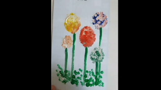 Рисуем цветы с помощью пузырчатой пленки и ватных палочек, легко и просто