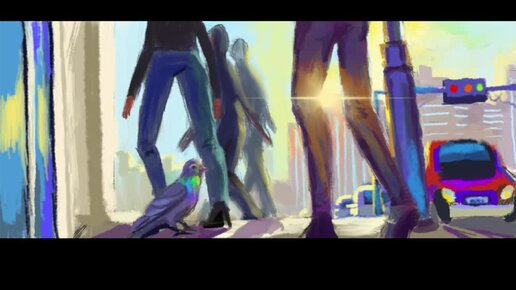 Голубь в толпе - пейзаж в Procreate поэтапно