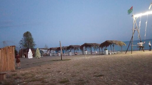 Вечер в Новом Афоне, качели, море и ёлочки.