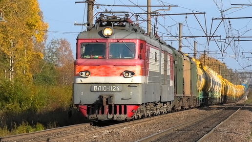 "Сладкоголосый" ВЛ10-1124 с грузовым поездом и приветливой бригадой