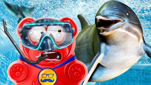 Дельфин напал на желейного медведя Валеру | Приключения медведя Валеры на море с дельфинами