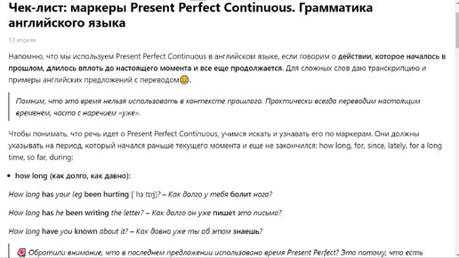 Слушайте в дороге: Чек-лист маркеры Present Perfect Continuous
