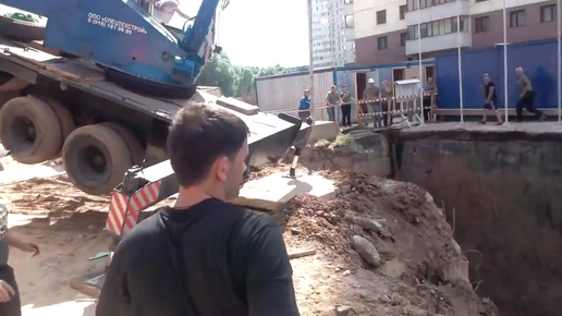 Опасная и предсказуемая работа крановщика, которая закончилась падением автокрана в котлован вместе с грузом