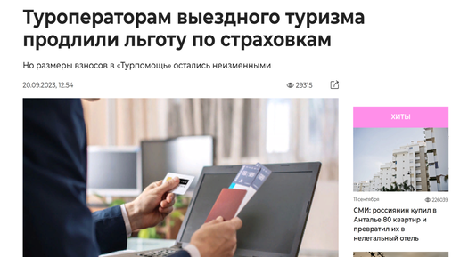 Новости туризма 20/09/2023 Туроператорам выездного туризма продлили льготу по страховкам #туризм