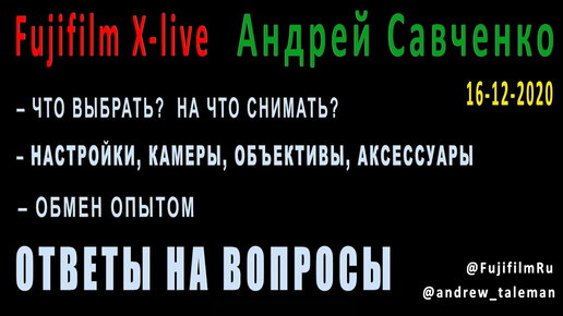 Fujifilmru: камеры, объективы, настройки. Ответы на вопросы \ Андрей Савченко [16-12-2020]