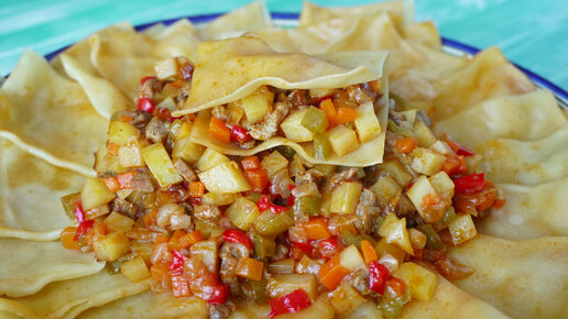 Недорогое праздничное блюдо казахской кухни. Готовят его в основном летом и осенью в сезон овощей, подаю со сметаной. Жаппасай по-казахски.
