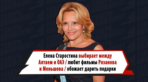 Елена Старостина мечтает отдохнуть на Алтае или в Эмиратах, без ума от фильмов Рязанова и Меньшова