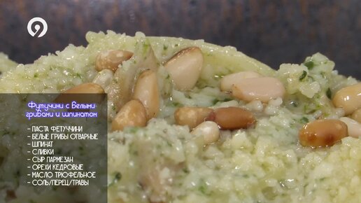 Фетучини с белыми грибами и шпинатом