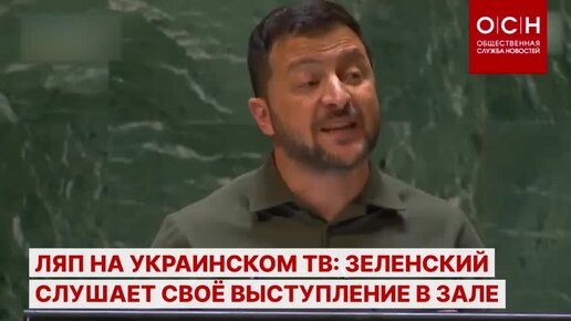 Украинское ТВ показало, как Зеленский внимательно слушает сам себя в ООН. 14 секунда