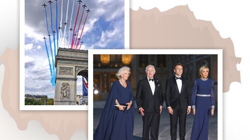 Шикарное платье от Dior, государственный банкет в Версале, яркая встреча в Париже:первый день тура Чарльза и Камиллы во Францию. Фотогалерея