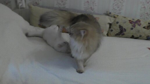 Далее: Котенок Снежок играет пытается доставть жёлуди из коробочки