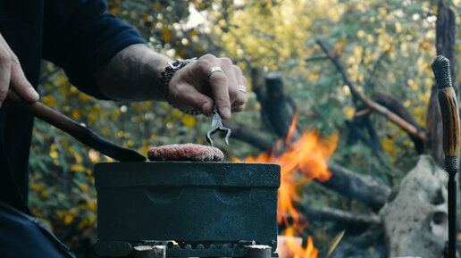 НЕТ СКОВОРОДЫ, НО ЕСТЬ СТАРИННЫЙ УГОЛЬНЫЙ УТЮГ | ЧИЗБУРГЕР В БУШКРАФТ СТИЛЕ от AlligatorKitchen
