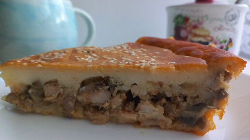 Нежнейший заливной пирог на кефире с курицей и грибами