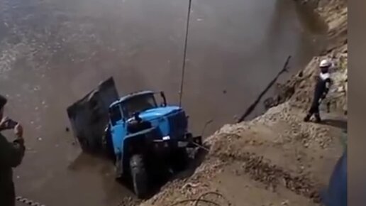 Водитель автомобиля Урал в последний момент успел выскочить из кабины после чего тяжелый полуприцеп пошел на дно реки