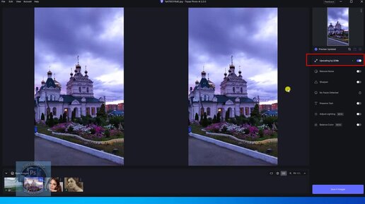Общий интерфейс «Topaz Photo AI 2.0.0», назначение основных элементов, возможности программы и примеры работы