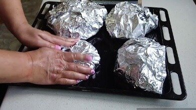 Просто заворачиваю в фольгу молодых петушков, картошку и лук. Это очень просто и вкусно