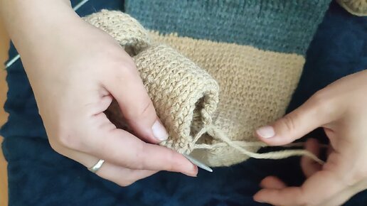 Всё соединяю три полоски и дальше вяжу как обычно.