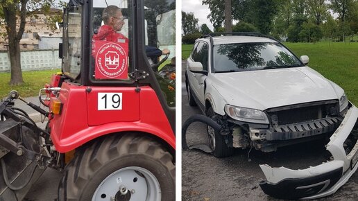 Водитель трактора разбил припаркованный «Вольво» на Гранитной улице и уехал