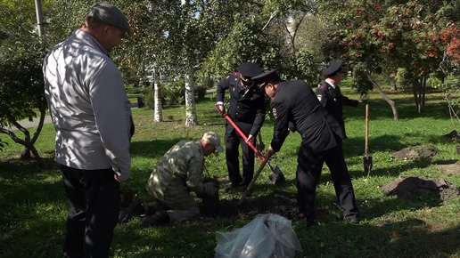 Деревья и кустарники высадили участковые в сквере за Оперным театром