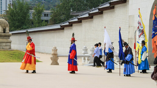 Церемония смены караула у императорского дворца Кёнбоккун ("сияющее счастье"). Сеул 28.09.2011г.