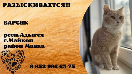 Пропал кот ! БАРСИК , респ. Адыгея , г. Майкоп