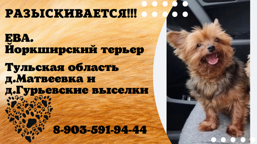 Пропала собака! ЕВА. ЙОРКШИРСКИЙ ТЕРЬЕР. Тульская область,д. Матвеевка и д. Гурьевские Выселки