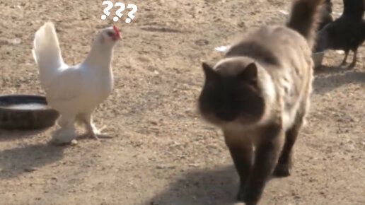 ЭТА КОШКА ЖИВЁТ В КУРЯТНИКЕ И ОХРАНЯЕТ ЦЫПЛЯТ