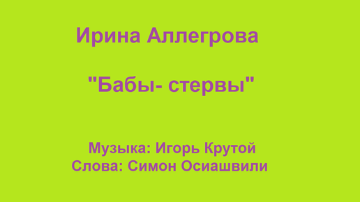 Ирина Аллегрова "Бабы-стервы"