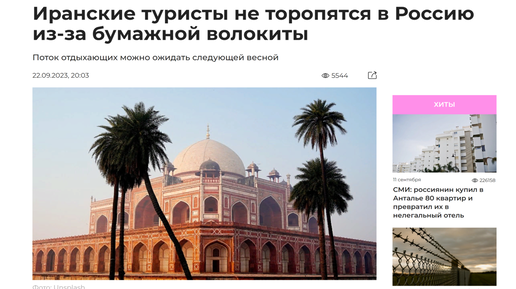 Новости туризма 22/09/2023 Иранские туристы не торопятся в Россию из-за бумажной волокиты #туризм