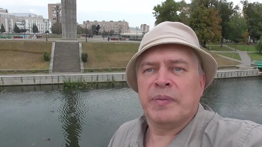 Геннадий Горин на набережной. Река Орлик и стела. Город Орёл