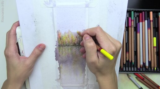 22. Рисуем книжную закладку с осенним пейзажем акварелью и цветными карандашами. Серия видео «Увлекательная акварель»
