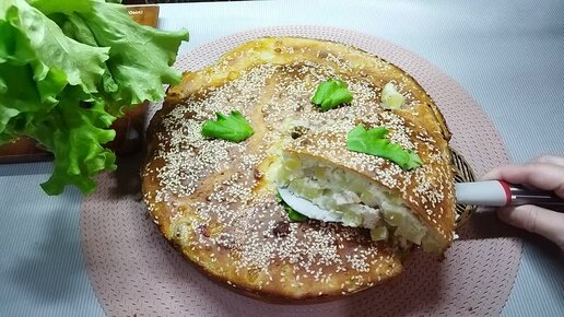 Заливной пирог на кефире, с курицей и картофелем. Несложная и очень вкусная выпечка!