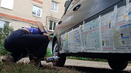 Обработка внешней стороны порогов Лада Гранта( Состав антикорор с шагренью)