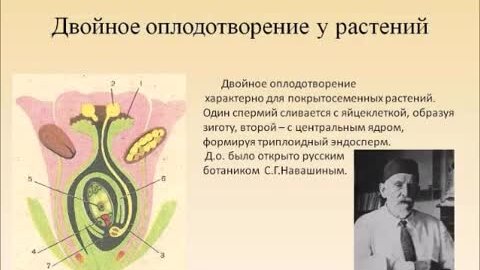 ДВОЙНОЕ ОПЛОДОТВОРЕНИЕ У ЦВЕТКОВЫХ РАСТЕНИЙ. СХЕМЫ И ВИДЕОФРАГМЕНТ.