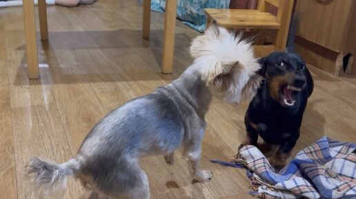Симба пытается расшевелить пожилого йорка и иногда у него это получается