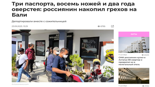 Новости туризма 23/09/2023 Три паспорта, восемь ножей и два года оверстея: россиянин на Бали #туризм