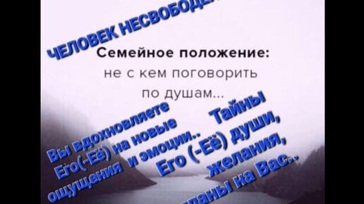 Он (-Она) НЕСВОБОДЕН, может быть моложе Вас.. Его мысли, чувства, желания о Вас..