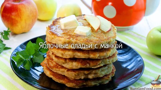 Пышные яблочные оладьи на завтрак. Яблочные оладьи с манкой