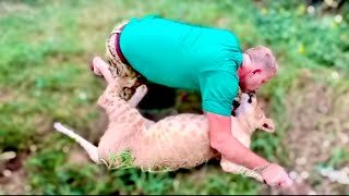 Олег Зубков пошел ПРИРУЧАТЬ ЛЬВЯТ, а мы с ЛЬВИЧКОЙ-НЯНЬКОЙ ждем у домика!