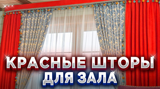 Шторы на заказ с ламбрекеном и бубенчиками 🔥 Идеальный дизайн интерьера зала в Красногорске – пошив стильных красных штор для вашего дома!