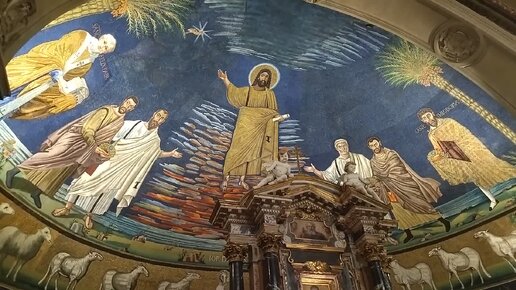 Мозаика VI века в византийском стиле в базилике Косьмы и Дамиана в Риме