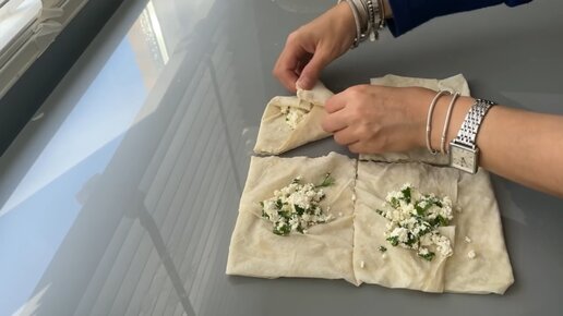 БЫСТРЫЕ КОНВЕРТИКИ ИЗ ТЕСТО ФИЛО С СЫРОМ, ЗЕЛЕНЬЮ И ТВОРОГОМ! #быстрыйрецепт#завтрак#бутерброд#перекус#закуски#булочки#булочкистворогом