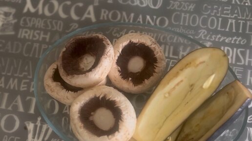 Баклажанные лодочки и золотые грыбочки с фаршированой начинкой.