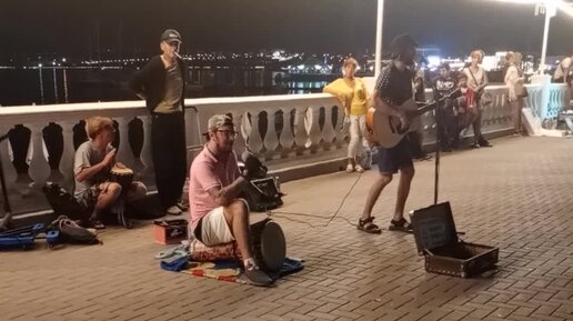 Зрителей почти нет! Уличные музыканты в Геленджике.