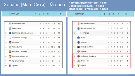 Чемпионат Англии (АПЛ). 6 тур. Результаты, расписание, таблица.