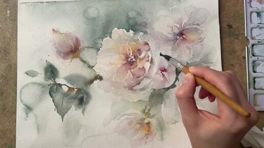 Как нарисовать цветы акварелью. Техника по сырому / смешанная техника.