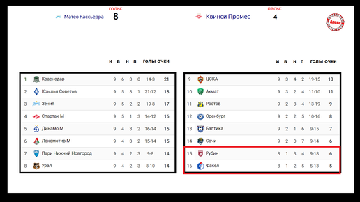 Чемпионат России (РПЛ). 9 тур. Результаты. Расписание. Таблица.