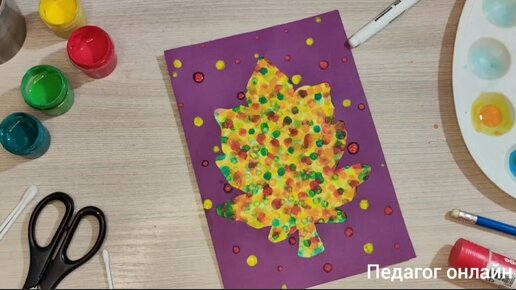 Осенний листочек. Рисуем ватными палочками. Мастер класс для детей