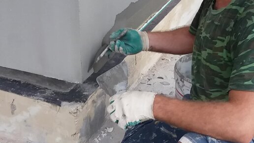 Установка капельника с сеткой в месте примыкания фасада к цоколю, утепление фасадов пенопластом по технологии СФТК Мокрый Фасад